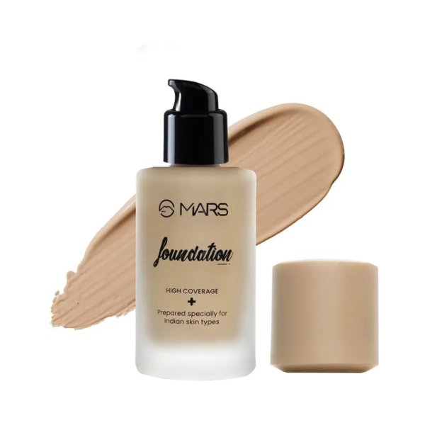 CONVENIENT PUMP DISPENSER-The foundation comes with a practical pump dispenser that allows for precise and mess-free application. This feature ensures that you dispense the right amount of product, preventing wastage and enabling you to control the coverage according to your preference. HIGH COVERAGE- The MARS High Coverage Liquid Foundation is designed to provide exceptional coverage, effectively camouflaging imperfections, including blemishes, redness, and uneven skin tone. It creates a flawless canvas for your makeup, giving you a perfected complexion. BLEMISH FREE FORMULA- Formulated with skin-enhancing ingredients, this foundation works to minimize the appearance of blemishes and imperfections, promoting a smoother and more even skin texture. It helps to blur the look of pores and fine lines, resulting in a refined and radiant finish. EASY TO BLEND- The foundation features a blendable and lightweight texture, making it effortless to apply and blend into the skin. It seamlessly glides on, allowing you to achieve an airbrushed effect and natural-looking coverage without any heavy or cakey feeling.